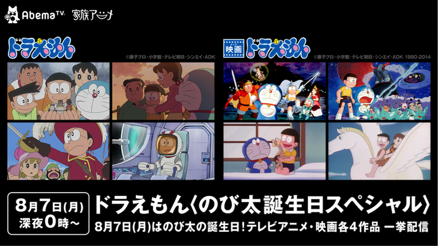 8/7「AbemaTV」でドラえもん『のび太誕生日スペシャル』 8作品一挙配信 - Doraemon Channel | Fujiko Today