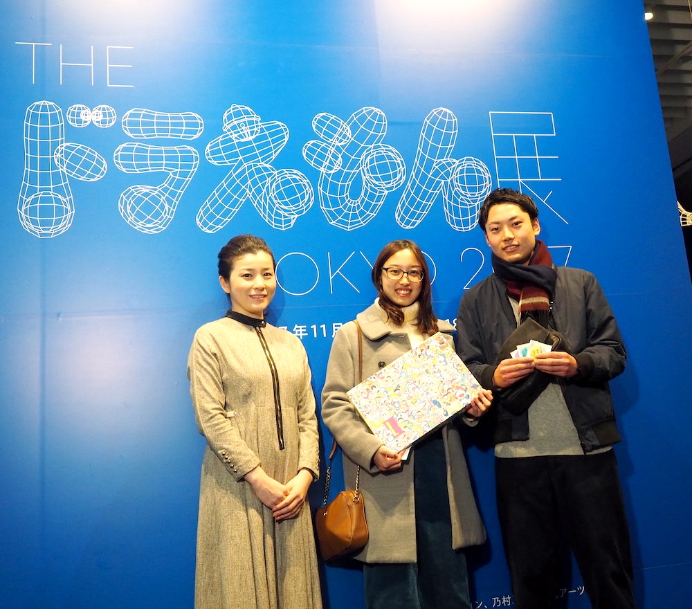 10万人突破記念セレモニーが開催され、「THE ドラえもん展 TOKYO 2017」出展アーティストの書家・中塚翠涛さんより、公式図録とアーティストの本展出展作品をあしらったオリジナルグッズなどの記念品が贈られました。