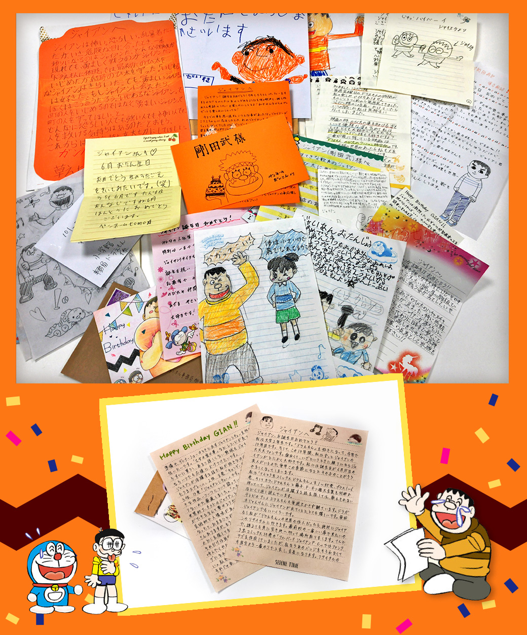 ”ジャイアンへのホットなレター”大募集に、世界中の“心の友”からたくさんのおたよりをお送りいただき、ありがとうございました!熱い心のこもったメッセージ、ジャイアンへの愛があふれたイラスト…どれも心に響く素晴らしいレターばかりでした!