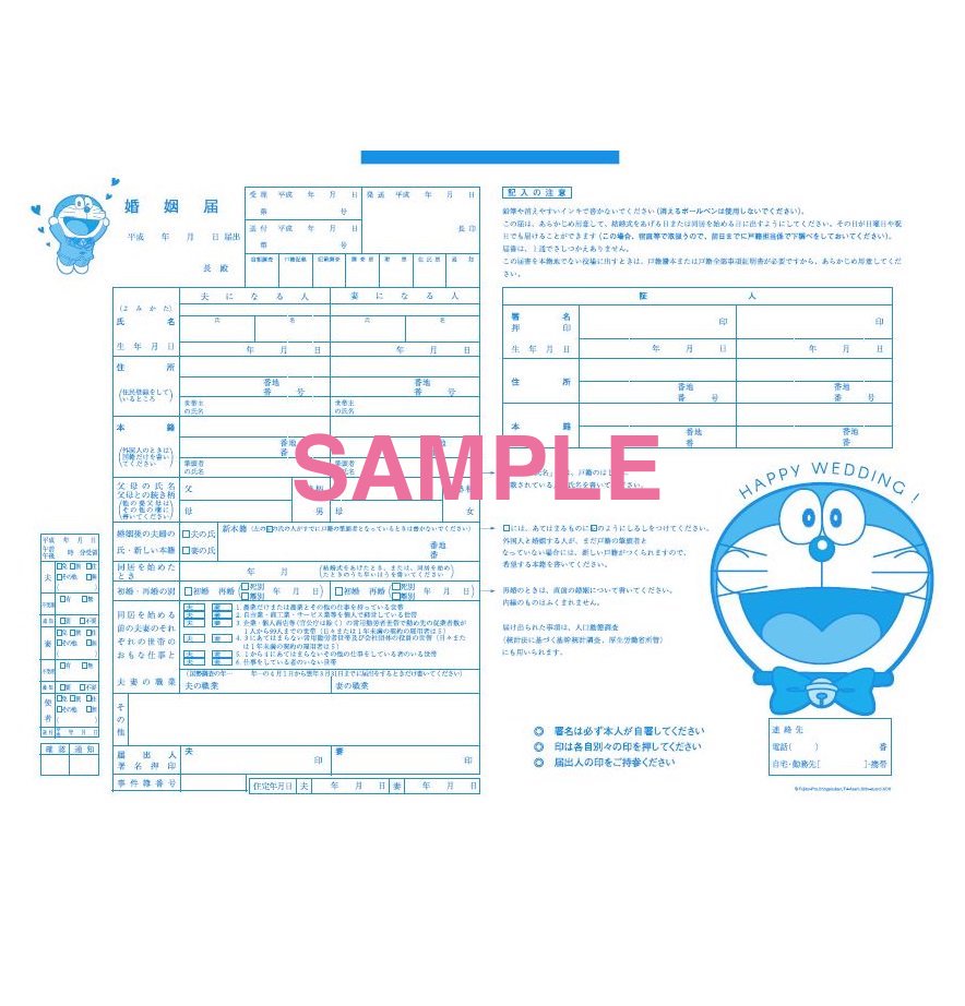「ドラえもん婚姻届」が登場!