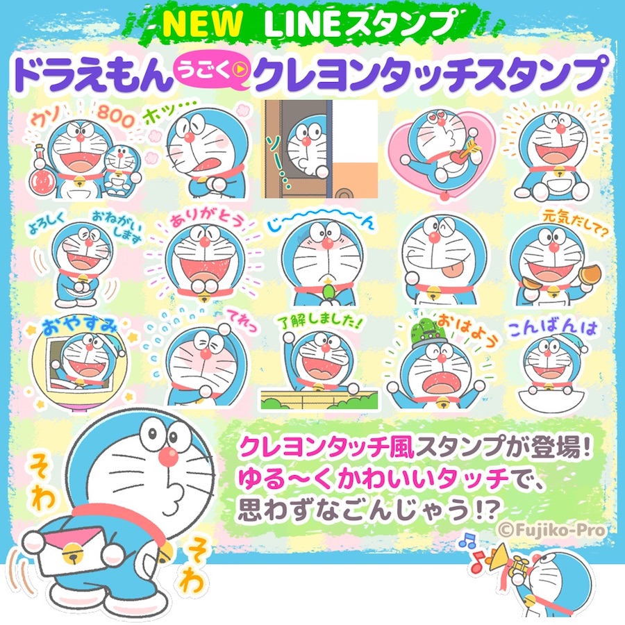 2019.01.17 LINEスタンプに 「ドラえもん うごくクレヨンタッチスタンプ」が新登場! LINEスタンプに「ドラえもん うごくクレヨンタッチスタンプ」が新登場! ゆる~くかわいいタッチのドラえもんスタンプで、楽しく気持ちを伝えてみてくださいね♪ 詳しくはこちら