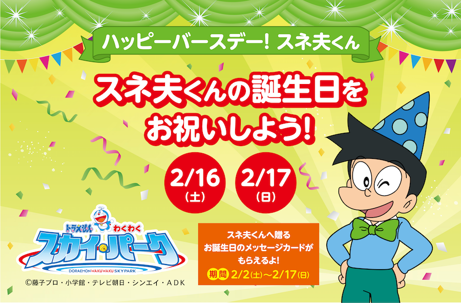 北海道・新千歳空港内ターミナルビルのドラえもん わくわくスカイパークで「ハッピーバースデー! スネ夫くん」を開催中!