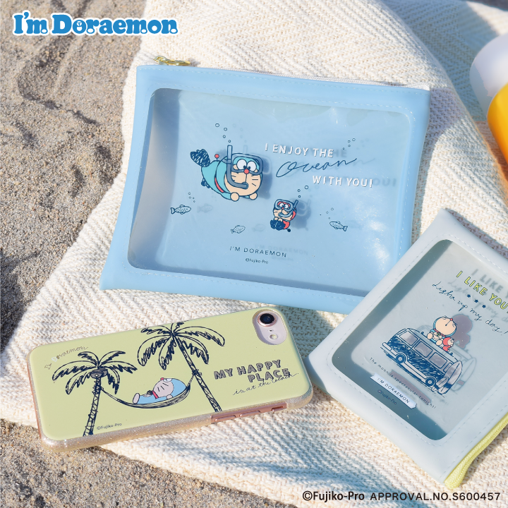 シュノーケルをしたり星空を眺めたりと、サマーバケーションを楽しむドラえもん。 ハンモックに揺られてお昼寝しているドラえもんのケースをよく見ると、ヤシの実が鈴に! 細部まで遊び心あふれるデザインシリーズだよ♪