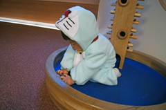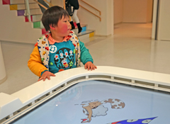 ひみつ道具アーカイブを楽しんでいる男の子。