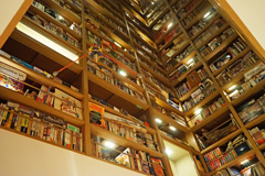 机の上に広がる巨大な書棚にも