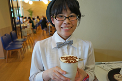 ラテアートに描かれたブービーもにこにこ笑顔♪