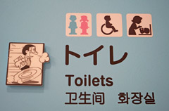 “トイレ”という文字のそばにいる