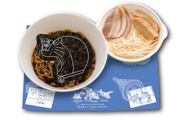 Inspired by the original art exhibit of Doraemon's Long Tales Nobita’s Little Star Wars, this ramen features a black, space-themed soup (soy sauce flavor).