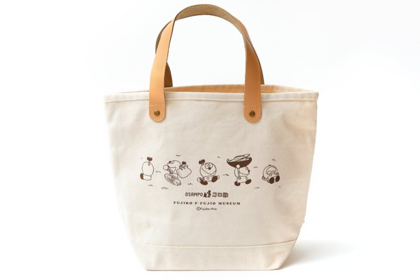かわいらしいコロ助がデザインされた、レザーハンドル仕様のトートバッグです。