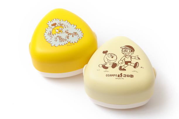 キテレツ&コロ助の“おさんぽ”シーンやひょっこり顔を出すコロ助がデザインされたおにぎり型のお弁当箱セットです。